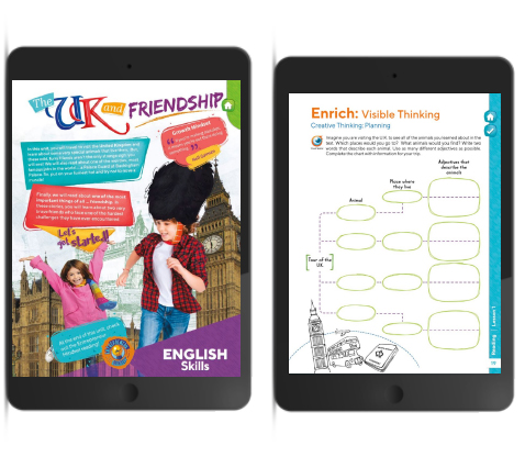 Desarrolla todas las áreas del lenguaje (listening, speaking, reading, writing) con contenidos integrados centrados en los estudiantes.